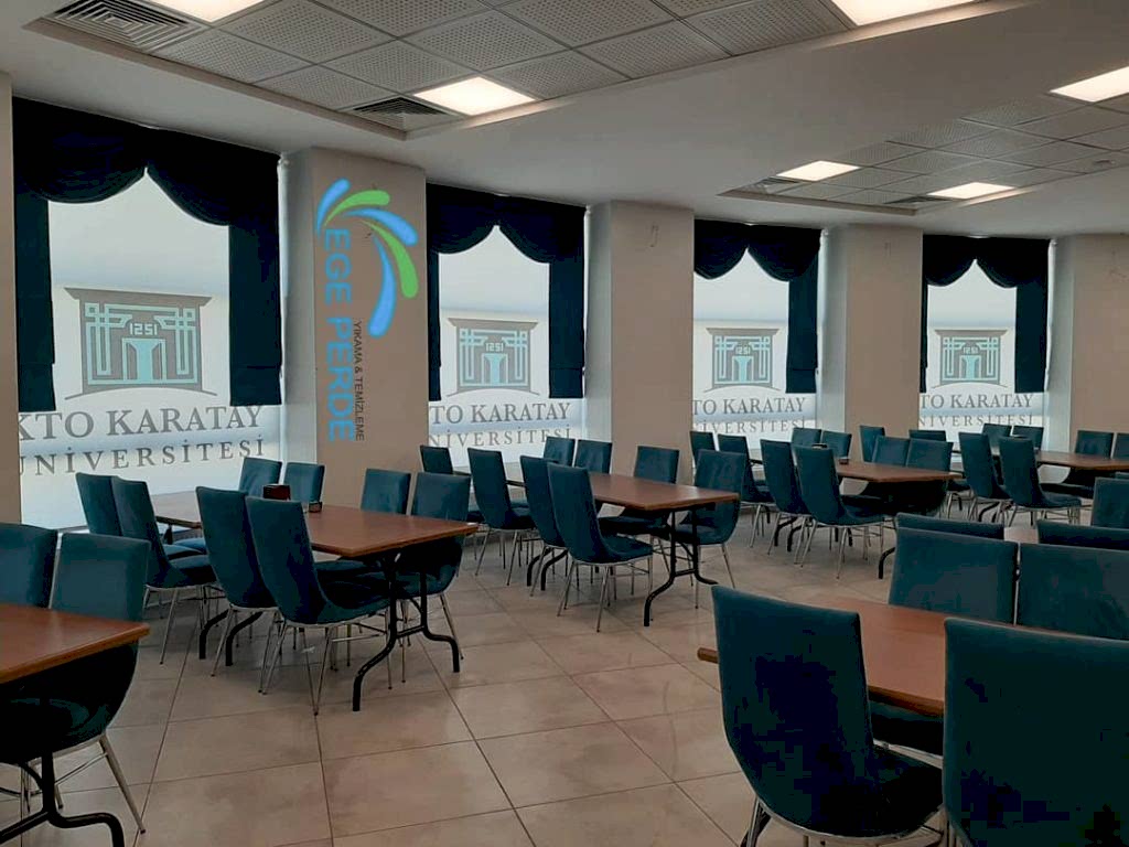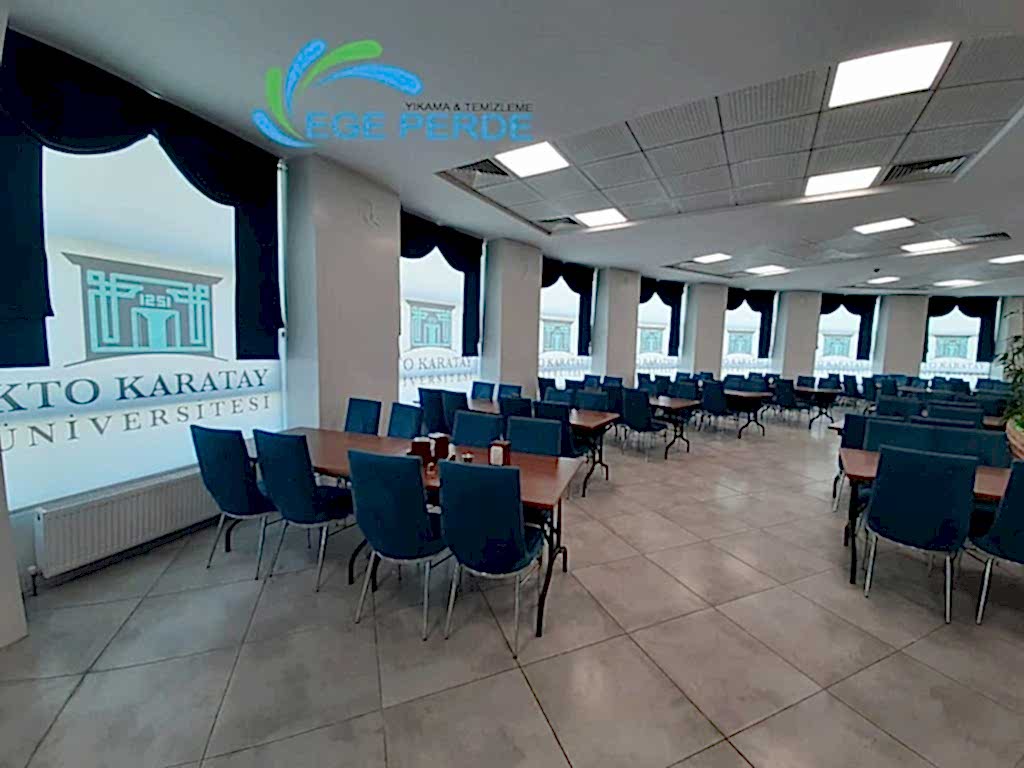 Karatay Üniversitesi Yemekhanesi’nin Perdelerini Yıkadık.