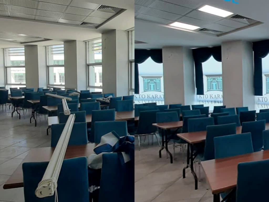 Karatay Üniversitenin Yemekhanesinin perdelerini yıkadık. Öğrenim gören öğrencilerimize ve öğretmenlerimize başarılı bir yıl diliyoruz.